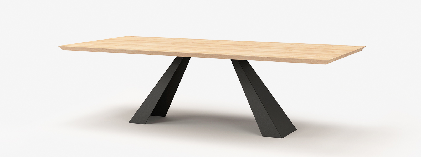 Size height: 77 cm depth: 90 cm width: 200 cm Top thickness: 2,5 cm Info: Base: black powder coated stainless steel Top: solid wood (oak, walnut or ashwood) This product can be customized upon request.